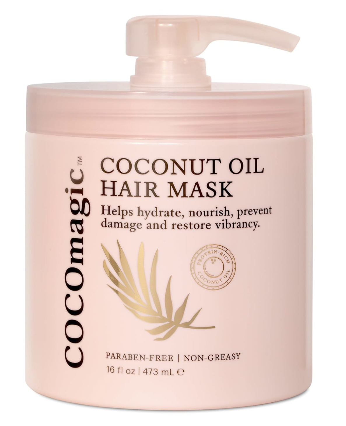 Cocomagic Coconut Oil Hair Mask (16 fl oz, 1.2 lbs) repairs damage, prevents frizz, restores shine. Protein-rich, extra hydrating. Paraben-free, cruelty-free. Made in USA. 1-year warranty.